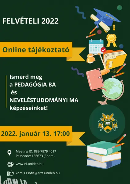 2021. január 13-én (csütörtökön) 17:00-tól várunk minden érdeklődőt az online felvételi tájékoztatón!! A tájékoztatón bemutatjuk a Pedagógia BA és Neveléstudományi MA képzéseinket, a felvételi menetét és megosztunk Veled minden fontos információt a jelentkezéssel kapcsolatban.