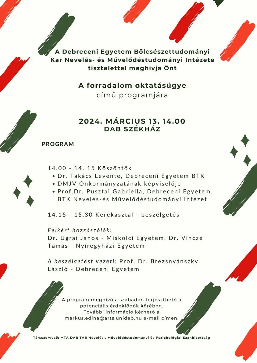 Neveléstörténészek beszélgetnek a forradalmi események oktatási vonatkozásairól. Szakmai "csemegének" tekinthető, ritkábban előkerülő téma kerül megvitatásra.